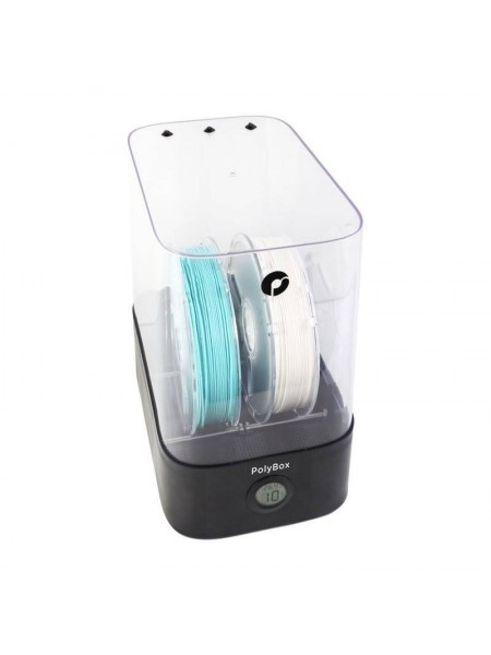 La PolyBox de Polymaker est une boîte de stockage pour filaments 3D. Elle contrôle et absorbe l'humidité contenue dans l'air afin de préserver la qualité des matériaux. La PolyBox peut contenir jusqu'à 2 bobines de 1 Kg chacune ou une bobine de 3 Kg. Elle permet de stocker les filaments et de les imprimer en simultané via une imprimante 3D.