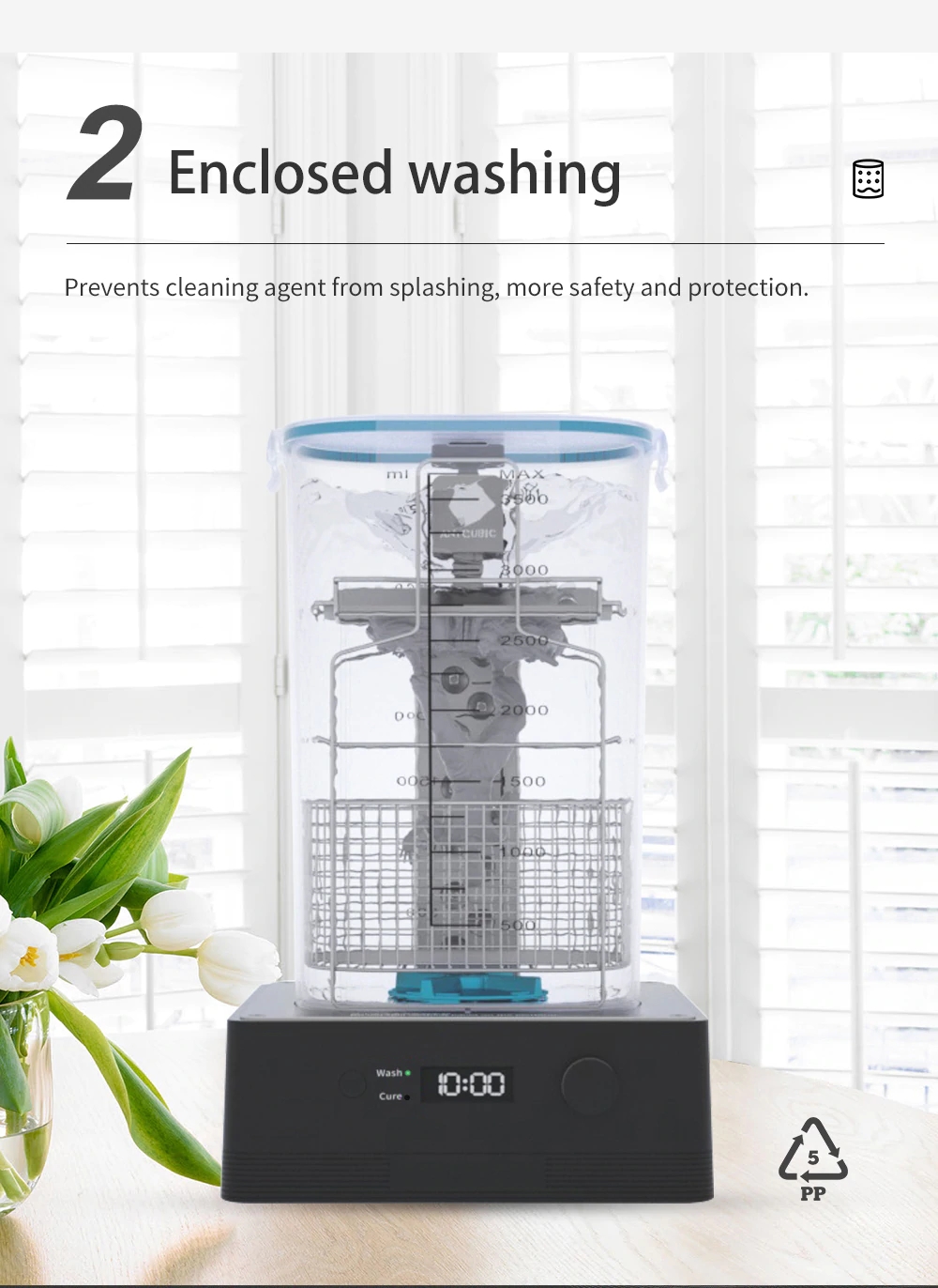 The Wash & Cure from Anycubic simplifies the handling for people who likes to print with resin. With only a few pushes of a button, this machine cannot only wash your prints, but also cure them. All this in the same machine.