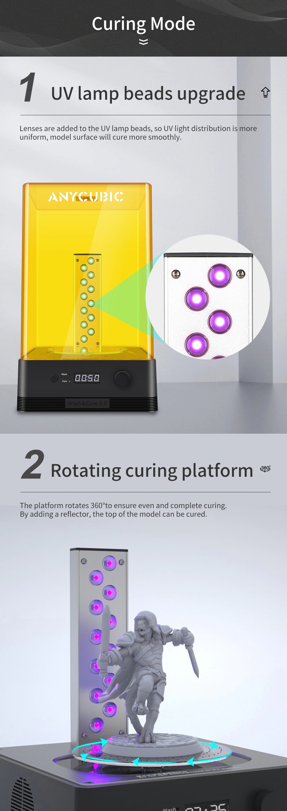 - 360° rotating curing platform